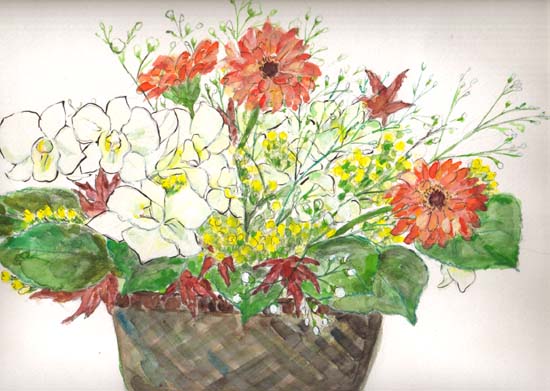 80代になって始めたアクアスイミングは楽しそうですね。「81歳で生まれて初めて水着を着た」と照れていましたが、すっかり水着も似合ってますよ。そろそろお魚になってしまうのでは?と心配しています。 形見になるからとか言って、レース編み、パッチワーク、編み物に夢中になってますが、暗くなっているのも気がつかないで編むのは止めてくださいね。秋の日暮れは早く、目を悪くしますよ。 兄にボケ防止(失礼ね!)にと、勧められているクロスワードパズルの答えは、そろそろ全問正解のプレゼントが新聞社から届くのではないでしょうか。 花好きの母さんのゼラニウム、つるバラ、小菊がしっかり松戸に根を張って、今うす紫と白のしおん(紫苑)の花が咲いています。 さわやかな秋。益々好奇心を燃やして、秋の美術館、菊まつり、紅葉狩り、海外旅行などしてくださいね。 母さんが83歳になても新しいことに興味を持って、毎日を生き生きと楽しく過ごしているのは、子供にとっても、とても嬉しい感謝したい気持ちです。どうぞ、平均寿命87歳を引き上げるように頑張って、きんさん・ぎんさんのようにもう一花咲かせてくださ。 |