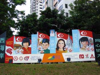年ごとにエンターテイメントの様相が強くなってきた独立記念日の式典はシンガポール人にとっての「お祭り」と化してきたようです。いつもの年ですと、独立記念日前後は歴史を振り返り、どうしても日本軍の侵略の行為に話しが及んでしまうのですが、今年は様子が違っていました。シンガポールは世界4大宗教が同居しているめずらしい多民族国家です。「セプテンバー イレブン」と単語になってしまったあの出来事がシンガポールではまだまだ尾を曳いて、宗教間、民族間の調和に大変神経を使っています。 シンガポールの行事は宗教に関わるものが主ですから、どうしても宗教別、民族別に祝ったり楽しんだりすることになります。独立記念日はシンガポール人4民族が全体で参加し祝うことのできる貴重な「お祭り」ですから、今年は特に民族間のハーモニーを謳いあげ強調していました。式典は歌、民族舞踊、エアーショー、花火と、娯楽の少ないシンガポール人には楽しみなイベントですから、入場券を手に入るための徹夜の列ができるほどです。 ![]() 私が住んでいるWest地区に立てられていた4民族調和をアピールする看板。 ![]()