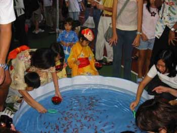 国の「お祭り」が終わったころ、こちらも毎年行われるシンガポール日本人社会の「夏祭り」が日本人小学校の校庭でにぎやかに開催されました。今年はインターネットブロードバンドでライブ放映もされたのだそうです。校庭にはやぐらが組まれ、次々にパフォーマンスが繰り広げられます。来場者の半分はシンガポール人で毎年楽しみにしてやってくるリピーターも多いと聞きます。夜店も並び、日本食や金魚すくいなどを楽しめます。紅白の夜店のテントはシンガポール人にはめずらし日本の風景のようでした。