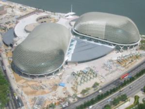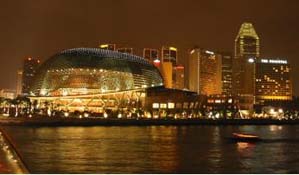 傑出した芸術家がいないわけではありませんでしたが、経済優先で国の成長にやっきとなっている時には芸術に目を向ける余裕はなかったのでしょう。優れた芸術家がいても、それを受け入れ鑑賞する受け皿がなければ豚に真珠です。真珠は飾られるにふさわしいところを求め、或いはふさわしいところから求められて流れて行ってしまったのが、過去のシンガポールだったようです。 経済発展を遂げ先進国入りしたシンガポールもようやく文化・芸術に目を向けるようになり、1990年代から毎年アートフェスティバルを開き、国内外のアーティストの紹介、そして国民に芸術への啓蒙を進めて来ました。 機熟し、シンガポールに国際級のコンサートホールと劇場が完成しました。名付けて“Esplanade theatres on the Bay”。エスプラネードの意味は、(海、川、湖)沿いの遊歩道だそうで、その名の通り、シンガポールリバーが海に注ぐマリーナベイにお披露目をしました。9月にお引越しを済ませたマーライオンとベイを隔てて向かい合い、新しいシンガポールの観光名所となりました。 10月12日からの柿落としのロンドン・フィルとニュヨーク・フィルの公演はどちらも即切符完売でしたが、幸い大好きなJazzコンサートの切符が手に入りましたので、最新最高の音響設備と機種、国際級のコンサートホールを体験しましょうと、ドイツからのWRD Big Bandの公演に行ってきました。1600席のコンサートホール内部も音響もやはり前評判通り素晴らしいものでした。エスプラネードがシンガポール人一人一人のための施設になるようにとの政府の願いは案外早く実現して行くような気がします。