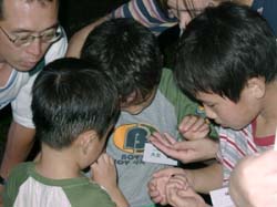 柴田町内で住民が一丸となってゲンジボタルを保護し、生育環境の保全に努力されている祇園入を訪ね、観察会を開催しました。当地区集会所にてホタルの里実践委員会会長から挨拶をいただいた後、宮城県森林インストラクターからホタルの生態と環境保全に関する説明を受け(写真1)、観察場所となっている「ホタルの里」へ向かうため集会所を出発。ホタルの光は、毎年見ても飽きない不思議な力があります。今年も期待を胸に歩を進め、途中、毎年多くのホタルが飛んでいた場所を通過。しかし、不思議と見つけることができず、実践委員会会長に伺ったところ、護岸工事を行った影響であることが判明。結果がこれほど顕著に現れるとは…。人間生活と環境保全の両立は難しいのでしょうか。とても、残念でした。数分後、「ホタルの里」に到着。大人も子供もその美しさに感動している声があちらこちらから聞こえてきます。先に到着していた子どもたちは、早くもホタルを追いかけて暗闇を走り回っている様子。この日は、実践委員会のご厚意で手にとって観察する事が出来、楽しい観察会となりました。(写真2)今年は、ゲンジホタルの飛散が例年より2週間位早く、ピークは過ぎておりゲンジとヘイケが半々でした。その後は、再び集会所に戻り、子供たちは自分の感想や質問を発表。「ホタルにどうしてオスとメスがあるのですか。」「ホタルは、保護色なのですか。」等の質問が次々と飛び出し、「やはり、子どもは凄い。」と感じたのは私だけだったのでしょうか。(講師:農林水産省及び宮城県森林