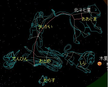 でも、今月もビッグな天文現象があります!しかも、日中です! 6月11日朝am6:48から太陽が欠け始めます!最大で太陽の41%が欠けます。 日本で見られる日食は、1998.8.11に西日本で見られたのが最後ですから3年ぶりとなるそうです。ひさびさの日食でわくわくしますね!(詳細は下記にて。) 1.季節の星座・・・てんびん座 てんびん座は、となりの大きな星座。農業の女神デーメーテール・正義をつかさどるアストライアともいわれる、おとめ座がもつ善悪(ぜんあく)をはかる秤(はかり)といわれています。 その昔、人類が黄金の時代といわれたころは、野山は野菜やくだものがしぜんにみのり、川には乳がながれ、カシの木からはあまいみつがながれていて、神々も地上に人類とともに住んでいました。 銀の時代になると、四季の区別ができたので、人々は家をつくり、たねをまいて働かなければならなくなりました。人々の心もとげとげしくなり、とりいれした食べ物や財産をめぐって、あらそいをするようになりました。 神々は、ひとり、またひとりと天上へ帰っていきましたが、アストライアはひとり地上にとどまって人類に正義をといてまわりました。 ところが、銅の時代になると、あらそいはますますはげしくなり、木々は切り倒され軍船となり、くわを作る鉄もするどい剣とかえられました。 さすがのアストライアも人類にあいそをつかし、白い翼をはばたいて大空へ帰っていきました。 てんびん座は、おとめ座とおなじく太陽のとおりみち、黄道(こうどう)に位置し、三千年まえは、秋分の日に太陽が位置していたため、昼と夜の長さがおなじであったため、てんびん座ができたともいわれています。種まきや収穫の時期を知ることもできたので、農業の女神デーメーテールのおとめ座ができたのかもしれませんね。 ![]() 2.今月の星を見る会と、天文現象のスケジュール