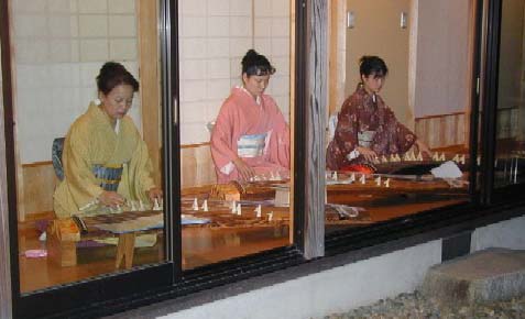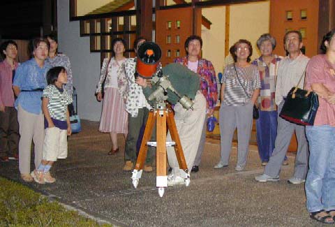 ☆−静かに流れ行く時の感動−観月会 9月21日しばたの郷土館の中庭を会場に観月会を開催しました。今年で6回目となるこの催しに160名を超える方々が来場されました。 お月様のほうは、おぼろ月に「おぼろが」10枚重なったような月が時折見えるくらいの悪天候。それでも、丸い月の姿や、雲の中に月光をみつけると、「でてきた!でてきた!」とはずかしがりやの名月を楽しんでいました。 また、会場では、かたりべ(柴田かたりべの会)、茶席(勤労青少年ホーム茶道教室)、筝曲演奏(筝曲生田流砂金美代子社中)のコーナーが開かれ、お客様と一緒に静かにふけ行く中秋の夜を堪能しました。 ![]() 【茶席】 ![]() 【筝曲 ![]() 【かたりべの会】 ![]() 【星見会】 ☆町史にもある日食観測