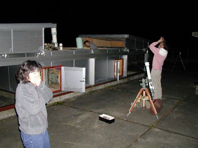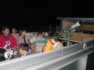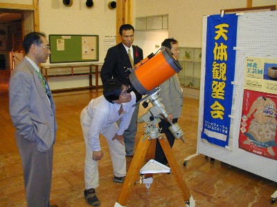 ◎ 10/1 「おめげっつぁん」 しばたの郷土館の月見の行事に「柴田町星見会」も参加してきました。 当日は、あいにくの小雨模様で実際の月を観望することは出来ませんでしたが、パソコンシュミレーションで、ちょっとだけ参加者に天体観望会気分を味わってもらいました。 星見会のほかにも、かたりべの会、勤労青少年ホームから茶道サークル、琴の演奏会などがありました。 ![]() ![]() ![]() ◎ 10/8 土星食 みたぞー! 早朝3:47月にかくれはじめ、4:07もう出現していた・・・ 天気予報では、前日から曇り、当日は、朝から曇り、昼曇り、夕方曇り、天気予報も曇りだったので、観測はあきらめて、目覚まし時計だけかけて就寝しました。 目覚まし時計に起こされて空を見ると、なんと!澄んだ星空に月齢21日の月が見えるではありませんか!とる物もとりあえず、太陽の村へのぼって、いざ望遠鏡をのぞきました。撮影は、準備不足でできませんでしたので、望遠鏡で観測した方たちの「ひと言」をいただきました。 A・・・いがったなやー、曇りだと思ってたけど晴れて〜 O・・・ついにやりました。土星が月に隠れて再び出てくるまでの間、天気も味方してくれました。いやー よたった。よかった。午前3時に早起きして太陽の村に行った甲斐がありました。この次は、11月のしし座流星群が楽しみです。また、いい天気になることを願っています。 K・・・皆さん,バタバタ (( \(−"−)/ )) ん〜おはようございます。外は晴れてます。いまから出発します。それでは後ほどよろしくお願いします。 …わくわくしながら太陽の村に到着し再び空を見上げると,「う〜ん?雲が結構出ているな・・・何とか見えるか?」そんなことを考えながら,望遠鏡を向けると,月に隠れる直前「やった〜!!\(^o^)/」見ることができました。さらに,月から出てくるところもバッチリ見れたし感動です。そのとき聞いた話によるともうすこし南(東京)の辺りだったら見れなかったんじゃないと聞いてまたまたびっくりしました。何はともあれ天気が何とかもってくれてよかったと思いました。 J・・・やった〜観測成功!みんなの熱い願いが通じた晴天でした! M・・・ねむかったけど、月のうしろから土星が出てくるのが見れてうれしかった。 E・・・まさか、晴れるとは・・・月の明かりがまぶしくて土星が脳裏に眼底写真となってしまいました。 N・・・ねむ〜い、みんななんでこんな時間におきていられるの? えーっ!土星ちっちゃーい、月がマブシー! T・・・東京都小平市での単身赴任中、あまり星がよく見えません。 久々の帰省、土星食も雲の合間から見えて感激しました。 I・・・みんな起きていたの? (図6 土星食観測リアルタイム)