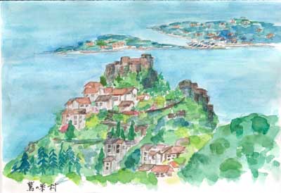一方、山側は鷲の巣村と呼ばれ、丘の上に民家が寄り添って集まる村は無数にあります。芸術家、工芸家のアトリエが多く、ピカソ、マチス、ルノワール、シャガール、コクトー、藤田嗣冶が住み、多くの作品を残しています。