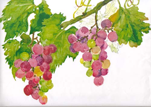 様々な植物が秋の風景を演じております。秋分の日、筑波山に登りました。稲刈りが終った所が目立って、ついこの間まで緑一色の里山がすっかり秋景色となり、山道には、あざみ、りんどう等の青紫の花々がひっそりと咲いていました。秋の花は探さなければ見つからない奥ゆかしさがあります。つゆくさの青い小さな花に宿る“露”は秋の季語になっていますが、秋冷の朝露が朝日と共に消えてしまうはかなさは、やがて華やかな紅葉の季節に移る序曲のように見えるのです。 ![]() 私の故郷への絵手紙を見てくれる友人から台風15号の松戸への接近でNO15号のぶどうは大丈夫でしたか?(もうお腹の中ですかね)という便りがありましたので、その後のぶどうの顛末を一言。もうそろそろ食べ頃と袋から収穫しようとしたら、袋の横を切り裂いて中身をしっかり盗み食いされていました。都会のカラスが私の上手をいっていて、がっくりと言うよりあっぱれでした。カラスの目の届かない鉢植えのぶどうは美しく実りました。