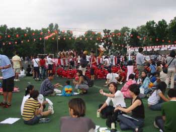 夏祭りのクライマックスは日本人もシンガポール人も来場者全員で踊る盆踊りです。シンガポール音頭も今年発表されて振り付けも楽しいものにできあがりました。写真をお見せしたいのですが、残念なことに何が何だかわからない写真に出来あがっていました。