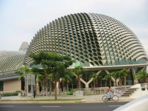 傑出した芸術家がいないわけではありませんでしたが、経済優先で国の成長にやっきとなっている時には芸術に目を向ける余裕はなかったのでしょう。優れた芸術家がいても、それを受け入れ鑑賞する受け皿がなければ豚に真珠です。真珠は飾られるにふさわしいところを求め、或いはふさわしいところから求められて流れて行ってしまったのが、過去のシンガポールだったようです。 経済発展を遂げ先進国入りしたシンガポールもようやく文化・芸術に目を向けるようになり、1990年代から毎年アートフェスティバルを開き、国内外のアーティストの紹介、そして国民に芸術への啓蒙を進めて来ました。 機熟し、シンガポールに国際級のコンサートホールと劇場が完成しました。名付けて“Esplanade theatres on the Bay”。エスプラネードの意味は、(海、川、湖)沿いの遊歩道だそうで、その名の通り、シンガポールリバーが海に注ぐマリーナベイにお披露目をしました。9月にお引越しを済ませたマーライオンとベイを隔てて向かい合い、新しいシンガポールの観光名所となりました。 10月12日からの柿落としのロンドン・フィルとニュヨーク・フィルの公演はどちらも即切符完売でしたが、幸い大好きなJazzコンサートの切符が手に入りましたので、最新最高の音響設備と機種、国際級のコンサートホールを体験しましょうと、ドイツからのWRD Big Bandの公演に行ってきました。1600席のコンサートホール内部も音響もやはり前評判通り素晴らしいものでした。エスプラネードがシンガポール人一人一人のための施設になるようにとの政府の願いは案外早く実現して行くような気がします。