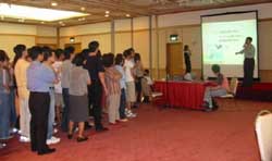 日本大学卒業生協会(日本の大学を卒業したシンガポール人の会)の主催により日本人会々館で10月20日、ほぼ一日かけて行われました。年齢層は専門学校、大学の学生の20歳前後が主でしたが、中学生から60代までと幅広く80名ほどの参加者がありました。20名の日本人ボランティアを加えて10名ずつのグループに別れ、各プログラムごとの得点を競い合う日本語競技会のような内容でした。 「まなあそび」とは日本大学卒業生協会の造語で「学び」と「遊び」を掛け合わせた、「遊びながら日本語を学ぼう」の意だそうです。 プログラムの内容はその「遊び」を前面に出してのクイズ、パラパラダンス講習会、ミニプロジェクトとそのプレゼンテーション、日本語でミニスキットの台本を書きグループごとに発表、などなど日本事情に通じ高度な日本語力がなければ太刀打ちできない難しいものばかりでした。参加者の日本語力はかなり高度で私達ボランティアはヘルプが目的で参加しましたが、外国人が話し、作り出す日本語ゆえのユニークさ、おかしさ、面白さ、奇抜さに、逆に一日楽しませてもらったようなものでした。 「まなあそび」は今回で3回目を数えるそうですが、主催者側としてはもっと多くの日本人に参加してもらいたいとの事でした。参加費、20ドル(日本円で1350円程度)はシンガポール人にとって安くはないのですが、それだけの金額を払っても日本人との交流を望んでいるシンガポール人のために次回もお手伝いをする約束をして帰ってきました。 日本に留学しているアジアの学生達が日本に居ながらも日本人との交流不足に悩んでいるとはよく聞く話です。 柴田町に農業研修に来ている中国からのお嬢さん達はその後、柴田町のみなさんと十分な交流を持てただろうかと、雑タウン誌に載った彼女たちの仙台空港到着の写真を思い出しました。私のPCの調子がおかしくて「まなあそび」の写真を掲載できませんでしたので、サイト管理者のクマさんにお願いして中国の研修生の写真を掲載していただきました。 |