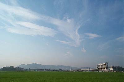 それにしても、梅雨のこの晴れ間は気持ちの良い朝であった。写真でも主役は空である。 |