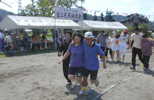 9月2日の日曜日に地元の富上地区(富沢と上川名地区)の区民体育祭(運動会)が農村公園で行われた(写真)。農村公園は富上分校跡地を拡張して整備された。町内各地で「健康づくりや地域づくり」として開催されているが、富上の区民体育祭は一番歴史が古く、今回で32回目を数える。両区合わせて160戸余りの集落だが、12班対抗で行われている。子どもからお年寄りまで、家族総出となる。競技は走る種目を少なくし、バケツに玉を入れる「バケツ玉入れリレー」豆を箸でコップに入れる早さを競う「鳩ポッポリレー」など、だれでも参加できるように工夫されている。
