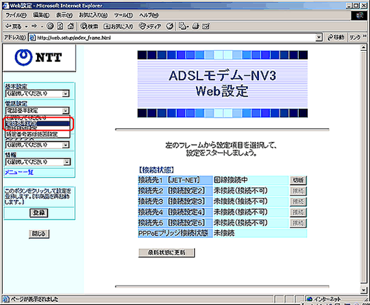 IP電話対応機器が ADSLモデム-NV、NV II、NVIII の方